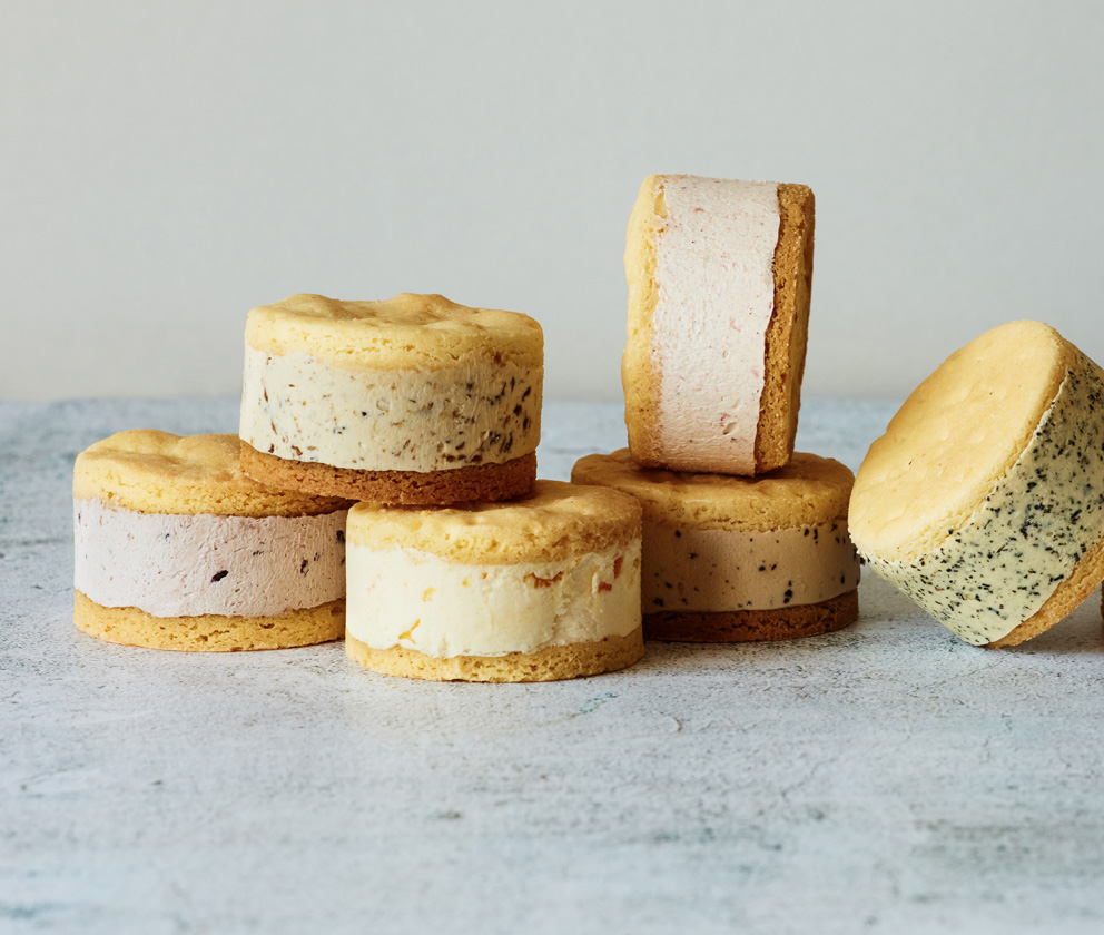 - 北海道産のバターを使用し、ホロっとした食感に焼き上げたサブレにバタークリームをサンドしました。どこから食べてもバターの香りが口いっぱいに広がる贅沢なバターサンドウィッチです。定番フレーバー「和紅茶アールグレイ」「せとかみかん」「ラムレーズン」「あまおう」の4種類の他に、「キウイフルーツ」「レモン」「塩キャラメル」「ブルーベリー」「あんこバター」「オレンジチョコレート」など一部店舗での販売フレーバーもラインナップ。