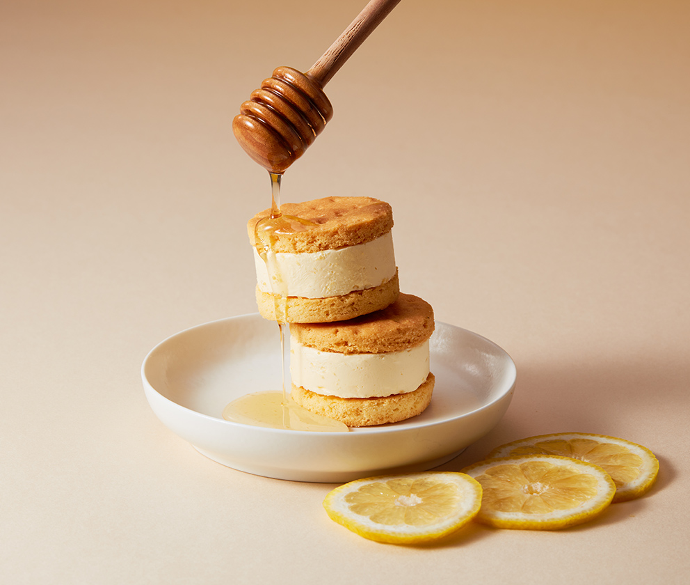 - 北海道産バターを使用してホロっとした食感に焼き上げたサブレで、希少な銀座はちみつと和歌山観音山フルーツガーデンで育てられたレモンで作った爽やかなジャムをバタークリームと混ぜ合わせてサンドしました。